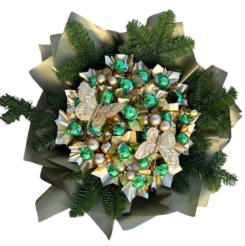 Expertly curated, the Luxe Chocolate with Butterflies Festive Sweet Box is designed to create an indulgent and visually stunning experience. Each element is thoughtfully placed to balance the sweetness of the chocolates with the enchanting beauty of the decorations. This box is not only a treat for your taste buds but also a delightful piece of festive décor. Delivered in an elegant, festive box, this sweet collection is beautifully packaged, making it an ideal gift or a special treat for yourself. The combination of chocolates, gold baubles, butterflies, and fresh spruce creates a visually stunning, seasonal masterpiece, perfect for the holidays. The Luxe Chocolate with Butterflies Festive Sweet Box symbolizes joy, beauty, and indulgence. The chocolates bring sweetness and luxury, while the butterflies and spruce branches bring elements of nature, renewal, and festive cheer. Order today for swift and reliable delivery, and spread joy with this delightful sweet box this festive season!