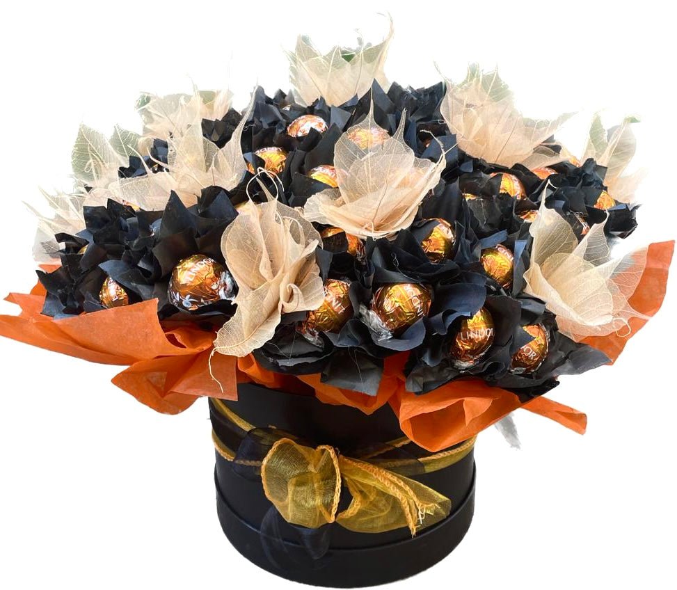Discover the exquisite blend of elegance and taste with Flowers Box London Luxury Black and Orange Chocolate Box. Crafted to delight, this stunning arrangement features a unique composition of premium chocolates, beautifully wrapped in a luxurious black and orange design. Each box is not just a gift but a masterpiece, making it a standout choice for those seeking something beyond the ordinary.