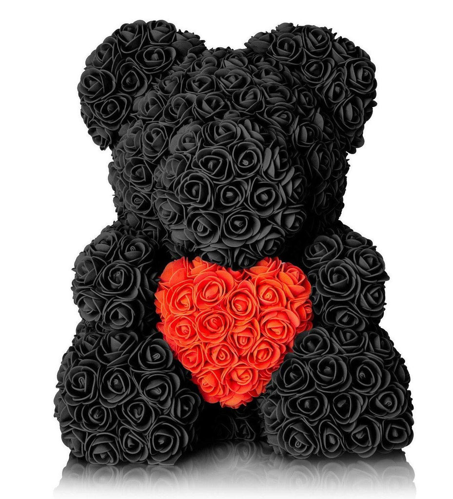 Handmade Luxury Black with Red Heart Rose Teddy Bear