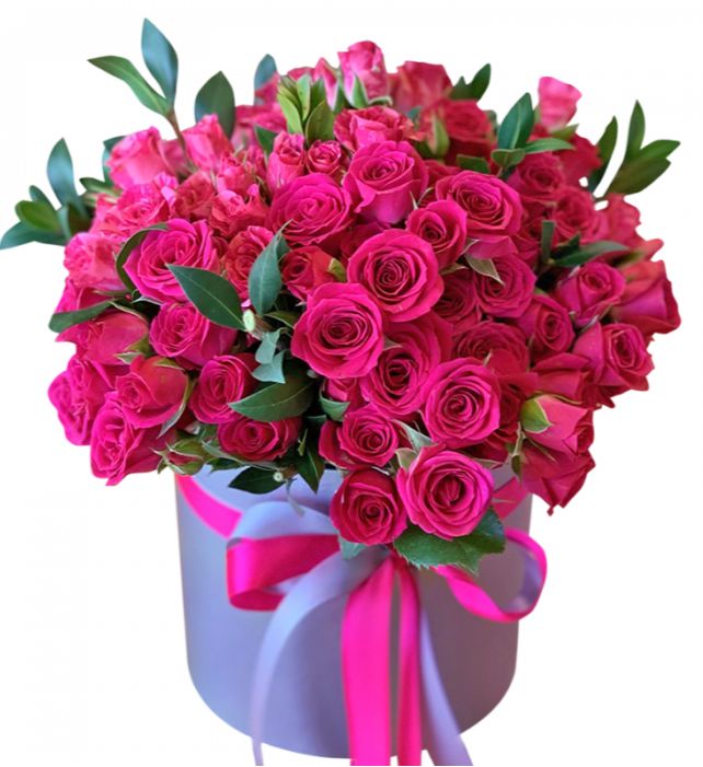 This stunning floral box is perfect for a variety of occasions, whether you're celebrating a special milestone, sending a thoughtful gift, or simply brightening someone's day with a pop of color. The combination of cerise spray roses and ruscus creates a captivating, elegant display that’s sure to leave a lasting impression.