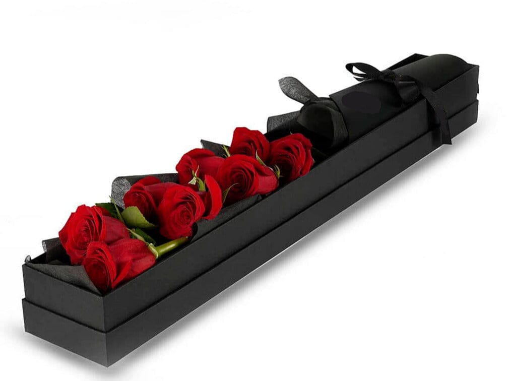 This exclusive arrangement features six handpicked roses, chosen for their flawless blooms, vibrant colors, and velvety petals. Encased in a luxurious box, the roses are carefully arranged to ensure freshness and beauty, creating a perfect balance of elegance and practicality.