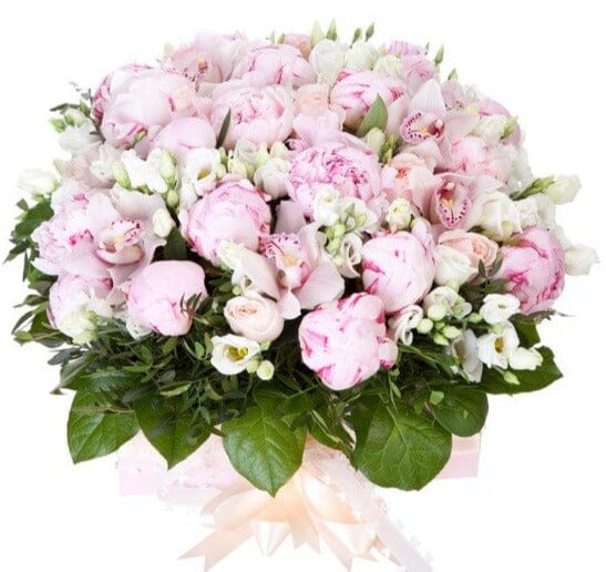 The Luxury Box of Peonies with Lisianthus is an exquisite floral arrangement that combines the lush beauty of pink peonies, the delicate elegance of white lisianthus, and the timeless sophistication of white cymbidium orchids. This luxurious flowers box is perfect for expressing love, admiration, or appreciation, making it the ultimate gift for any special occasion.