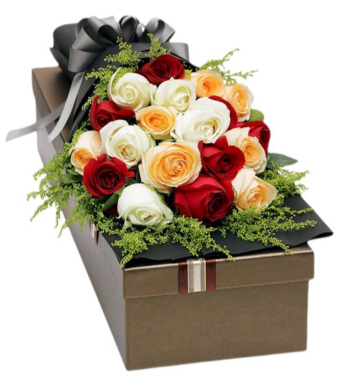 Luxury Box of Three Roses Color with Solidago – A Vibrant Floral Trio