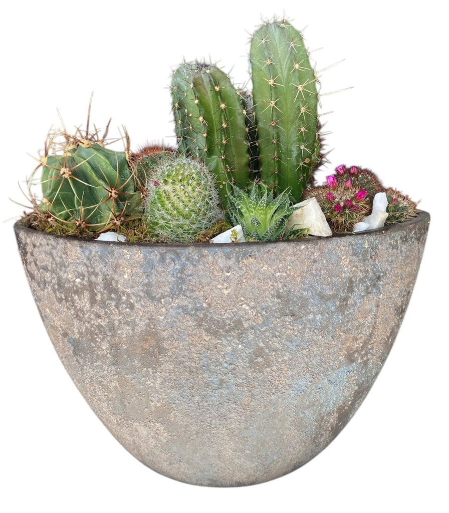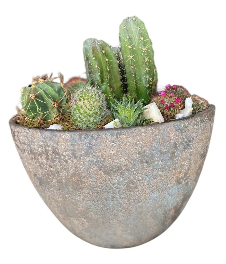- Ceramic Oval Pot: a sleek and contemporary container that adds a refined finish to the arrangement, perfectly complementing the rugged charm of the cacti.