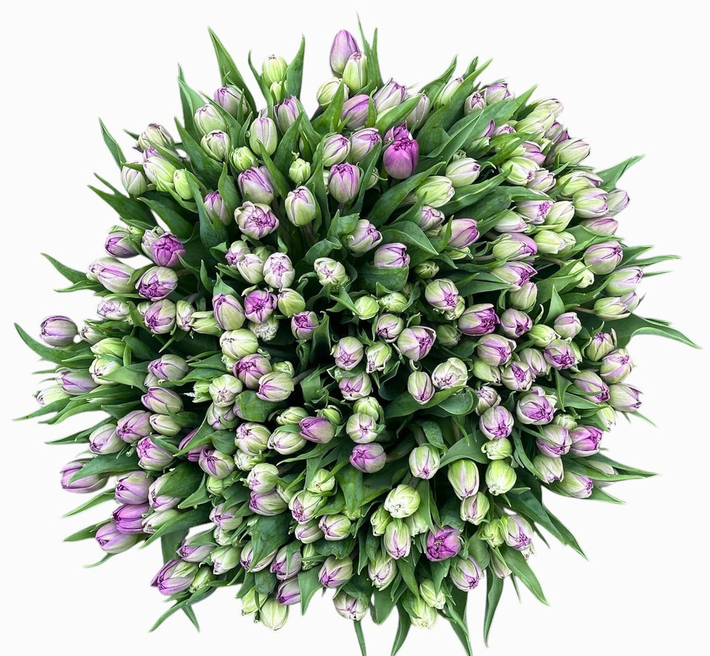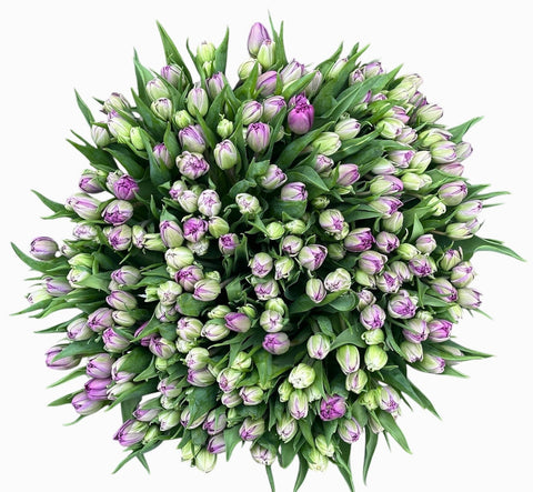 The beauty of double tulips lies in their full, blooming petals that create a more intricate and refined appearance, making them stand out in any setting. Presented in a chic box, this elegant floral display is not only visually striking but also easy to gift and display in the home or office.