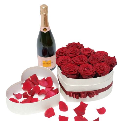 Luxury Gift of Red Roses Box and Veuve Clicquot Champagne