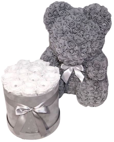 Experience the epitome of luxury and romance with our Luxury Gift Set of Infinity Roses in a Box with Rose Teddy Bear. This carefully curated gift set features Infinity Roses in a color of your choice, paired with a charming Rose Teddy Bear, making it the perfect gift for any special occasion.