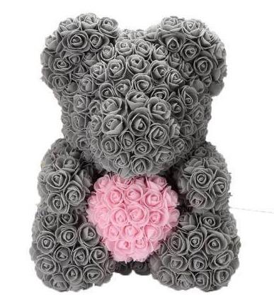 Handmade Luxury Grey with Pink Heart Rose Teddy Bear