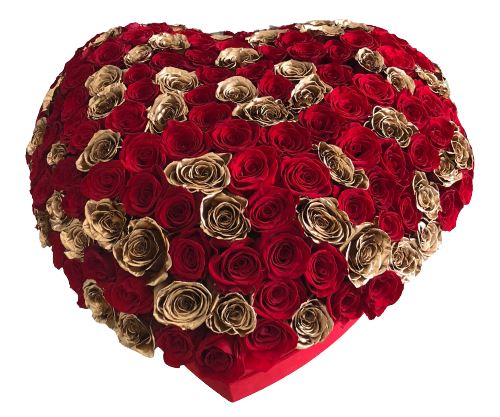 Introducing the Luxury Heart Box of Gold and Red Roses – a stunning combination of timeless elegance and opulence. This exquisite arrangement features a luxurious heart-shaped box filled with vibrant red roses and gold-painted roses, creating a breathtaking display that symbolizes deep love, passion, and sophistication.