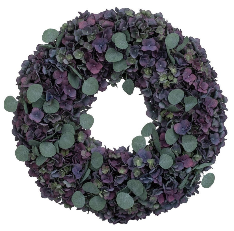 Welcome your guests with the breathtaking elegance of the Luxury Pimpernel Hydrangea Door Wreath, an exquisite display of natural beauty designed to elevate your home’s entrance. This premium wreath features fresh Purple/Blue Hydrangea blooms, admired for their full, rounded petals and striking colour gradients that range from deep violet tones to cool, serene blues. Each hydrangea head is carefully selected for richness, texture, and lasting freshness, creating a truly luxurious seasonal statement piece. Complementing the hydrangeas is an artful arrangement of eucalyptus, bringing a naturally soft fragrance and a sophisticated touch of silvery-green foliage. The eucalyptus leaves add depth and graceful movement throughout the wreath, enhancing its lush character while offering a timeless, botanical feel.
