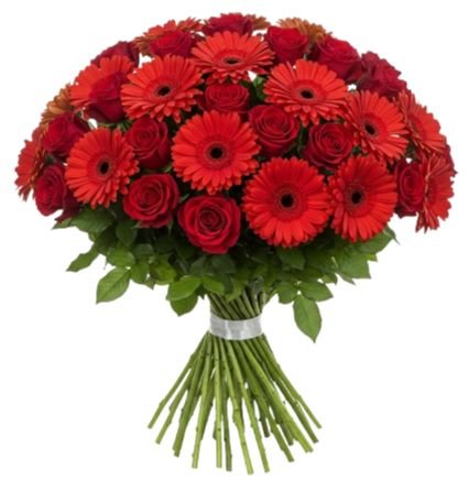 - Red Roses: timeless and romantic, representing love, passion, and devotion. Radiating warmth and cheer, red gerberas add a bold and modern touch. Their large, daisy-like heads bring a vibrant energy and a sense of joy to the arrangement.