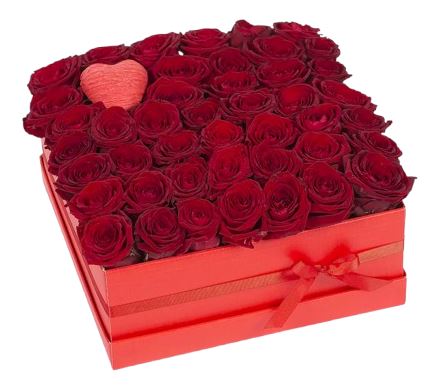 The combination of premium roses and delicious chocolate hearts creates a gift that appeals to both the senses of sight and taste, making it an unforgettable gesture. The Luxury Red Roses with Chocolate Hearts Box not only holds the beautiful roses and chocolates but also adds a sophisticated touch to the overall gift, making it perfect for any romantic occasion.