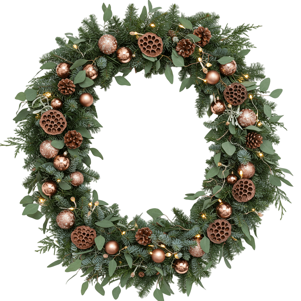 The Luxury Rose Gold Christmas Wreath is a stunning statement piece that combines festive sophistication with a modern, glamorous twist. Crafted with lush fresh spruce, rose gold accents, and soft glowing lights, this wreath brings warmth, style, and sparkle to your seasonal décor — perfect for doors, walls, or mantel displays. The Luxury Rose Gold Christmas Wreath transforms traditional holiday décor into something extraordinary. Its combination of natural beauty, shimmering metallics, and gentle lighting makes it a timeless and sophisticated addition to your seasonal celebrations.