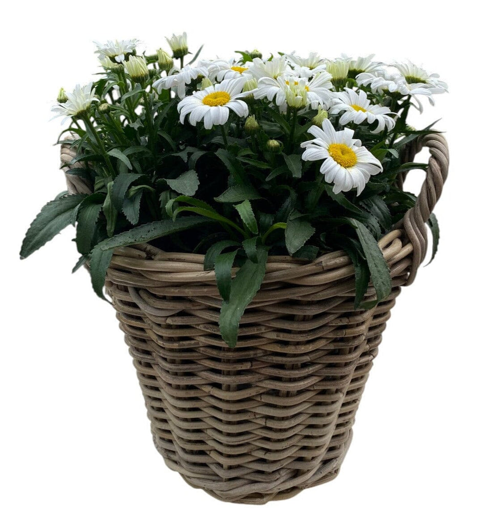 Luxury Wicker Basket of Daisy Leucanthemum: Rustic Elegance with Timeless Charm