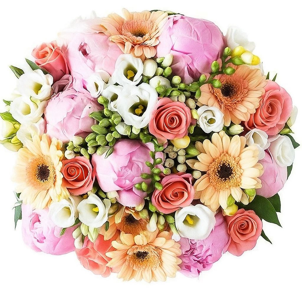 - Pink Peonies: symbolizing romance, prosperity, and good fortune, the Pink Peonies in this bouquet add a touch of whimsy and femininity. Their lush, ruffled petals and soft pink hues create a dreamy focal point that captures the essence of springtime.
