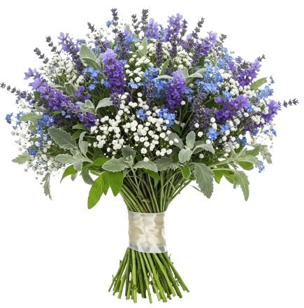 - Stachys Silver Leaves (lamb’s ear): contribute a velvety texture and a muted silver tone that enhances the bouquet’s soft, pastoral feel.