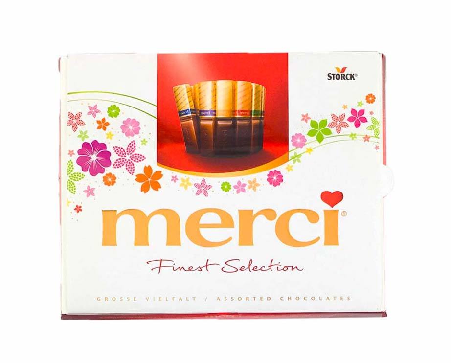 Delicious Merci chocolates with delivery! Merci Finest Chocolate is made from selected ingredients and individually wrapped in gold: this is how Merci made its way into people'’'s hearts since 1965. Merci gift box chocolate is the perfect gift to say thank you.