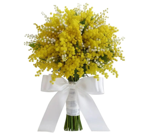 The Mimosa and Lily of the Valley Bouquet is a beautifully delicate spring arrangement combining the soft, fragrant charm of lily of the valley with the sunny brightness of mimosa (acacia). This refined bouquet is perfect for celebrating new beginnings, birthdays, anniversaries, or simply sending a thoughtful gesture filled with warmth and joy.The lily of the valley brings an unmistakable, fresh fragrance and symbolises happiness and purity, while the golden blooms of mimosa add light, texture, and a cheerful touch. Together, they create a graceful and elegant bouquet that feels timeless and uplifting.