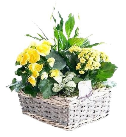 Transform your surroundings with our captivating arrangement of blooming plants thoughtfully presented in an elegant basket. This stunning composition brings nature's beauty indoors, creating a delightful ambiance that brightens any room. Explore Flowers Box London for exquisite plant arrangements that inspire and enchant. Send a garden of joy in a basket.