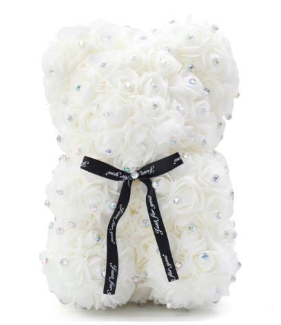 Handmade Mini Luxury White Rose Teddy Bear with Diamonds