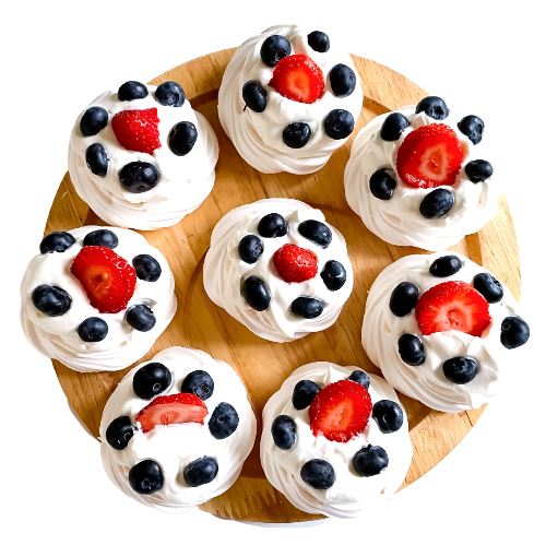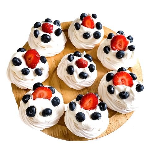 The perfect mini meringues for all occasions or no occasion! Try our delicious royal cake consisting of: meringue, milk, eggs, sugar, mascarpone cheese and fruits.
