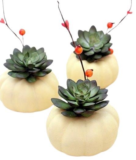 - Natural White Mini Pumpkin: serves as a charming focal point in this set. Its clean, understated beauty offers a striking contrast to the colorful succulents and berries, embodying the essence of autumn while adding a rustic touch.