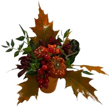 Ideal as a table centerpiece, mantelpiece accent, or festive gift, this decoration captures the rich colours and textures of fall. Whether for Halloween, thanksgiving, or autumn home décor, it brings a touch of seasonal charm that brightens any room. Bring the beauty of the fall season indoors with this charming Mini Terracotta Pot with Pumpkin Decoration — a timeless piece of autumn artistry.