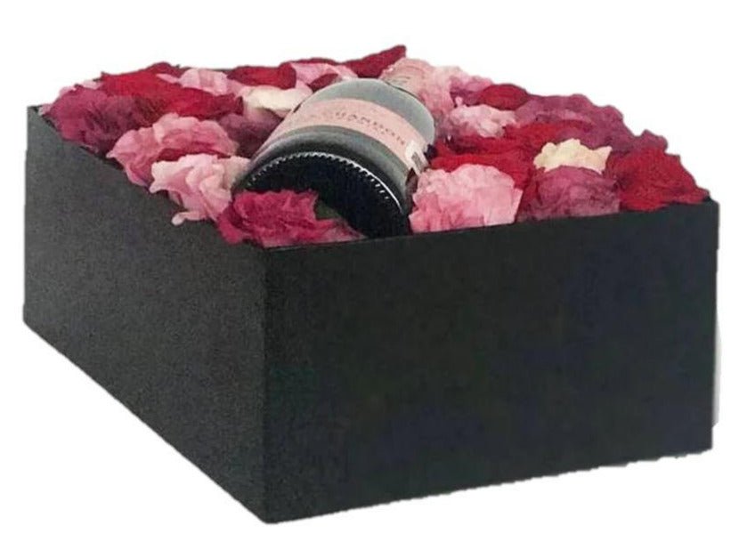 Celebrate life's special moments with our exquisite Moet in Blooms Gift Box. This stunning gift box features a beautiful floral arrangement of red roses, burgundy carnations, pink vintage carnations, and pink lisianthus, paired with a bottle of Champagne Moët & Chandon. Perfect for birthdays, anniversaries, weddings, or as an unforgettable gift for someone special.