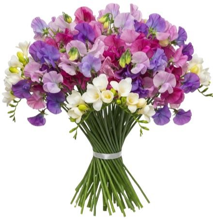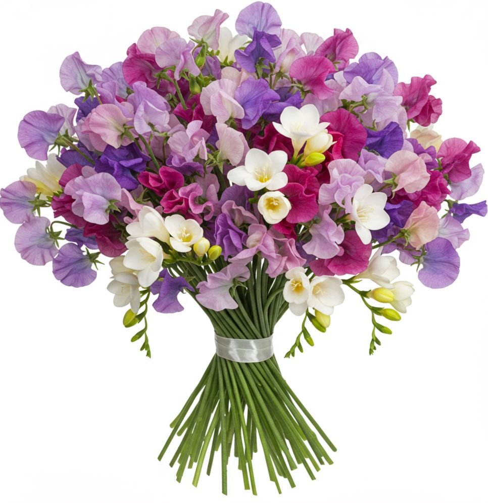 Sweet Pea and Freesias Bouquet – Vibrant, Colorful Floral Arrangement