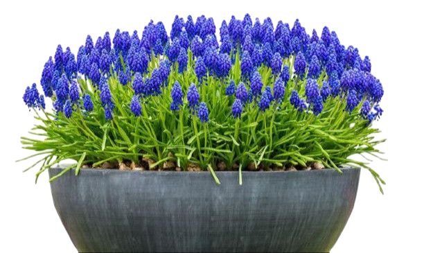 Muscari: are known for their compact and clumping growth habit. They are relatively low-growing, reaching a height of about 6 to 12 inches (15 to 30 cm), depending on the species and variety.Muscari is popular in gardens, rockeries, and container plantings. They are often planted in borders or as ground covers, creating a visually striking display when planted in groups.Muscari plants are valued for their ornamental beauty and are frequently used in landscaping to add color and texture to gardens. They also make lovely cut flowers for floral arrangements.