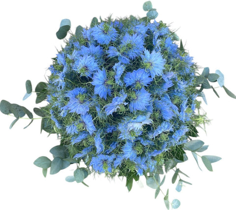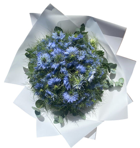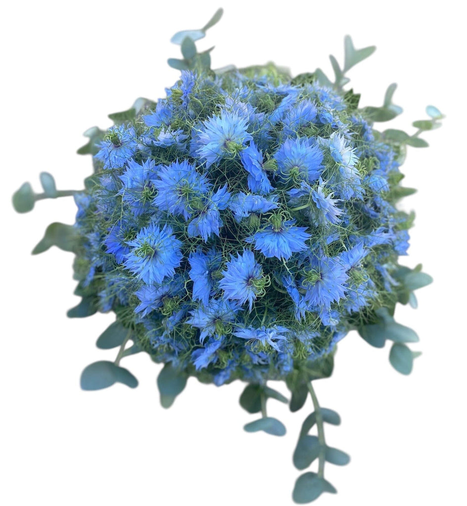 Elevate your space or special moment with our Nigella with Eucalyptus Bouquet, a delicate and stylish arrangement perfect for weddings, events, or thoughtful gifting. This handcrafted bouquet features enchanting nigella flowers (Love-in-a-Mist) — available in a range of colours to suit your theme — paired beautifully with aromatic eucalyptus, known for its soothing scent and elegant greenery.This bouquet is perfect for lovers of minimalist, garden-style aesthetics and makes a lovely gift or décor piece for any occasion.