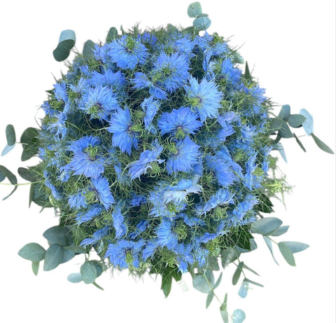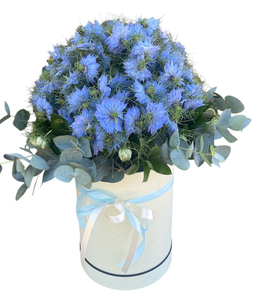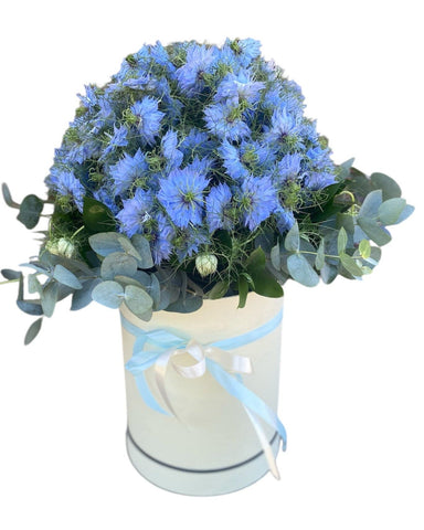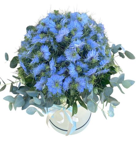Delight in the natural elegance of the Nigella with Eucalyptus Luxury Flowers Box, featuring airy blue nigella paired with fragrant eucalyptus. A sophisticated gift ideal for birthdays, celebrations, or thoughtful gestures. Handcrafted and available for fast delivery from Flowers Box London.