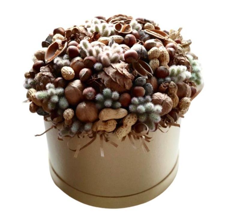 Discover the beauty of simplicity with our Nut Box, a thoughtfully arranged selection that combines a variety of premium nuts with natural catkins for a rustic and elegant presentation. Perfect as a seasonal gift, decorative centerpiece, or healthy treat box, this arrangement celebrates nature’s textures and tones in the most refined way. Our assortment also includes a box that consists of nuts and other additives. This box is designed for people who like flowers less and more about accessories. This arrangement is perfect for any occasion. During this christmas time, it is also worth giving a loved one something like this to impress them with something unusual. Various types of nuts add charm to the whole composition. A good alternative for those who need something other than a regular flower bouquet.