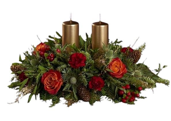 Perfect for hosting a dinner party, a cozy family reunion, or a joyful Christmas celebration, this centerpiece is sure to impress your guests and spark delightful conversations. Featuring a blend of fresh flowers, fragrant spruce trees, and soft candlelight, it creates a magical ambiance that enhances the spirit of the season.