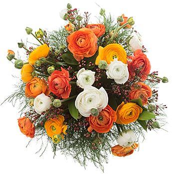 Orange and White Ranunculus Bouquet it's a delightful and vibrant choice for making someone happy and expressing your affection. The assurance of delivery to any address in England and even abroad adds a touch of convenience and flexibility, making it easy to send this cheerful bouquet to your loved ones, whether near or far.