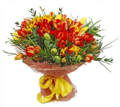 - Orange Tulips: radiating with the fiery hues of sunrise, the orange tulips symbolize enthusiasm, energy, and passion. Their bold and vibrant color adds a dynamic touch to the bouquet, instantly capturing attention and igniting the senses.