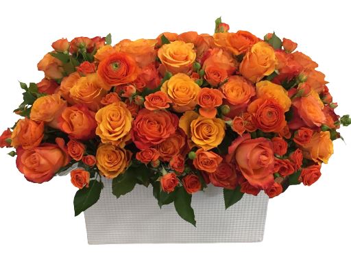 Elevate any occasion with our luxurious Orange Roses Arrangement, beautifully presented in a high-quality box. This exquisite floral display combines a vibrant mix of orange spray roses, elegant peach roses, and delicate orange ranunculus, creating a stunning, multi-textured bouquet that will captivate anyone who receives it.