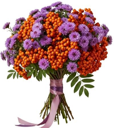 Fresh Orange Rowan & Aster Flowers - Unique Autumn Bouquet