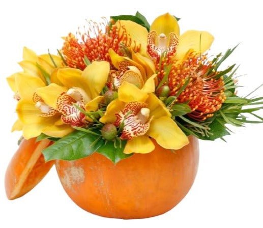 Orchids Pumpkin Arrangement - Unique Fall Floral Designs - Flowers Box London