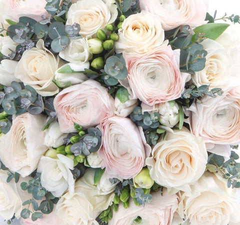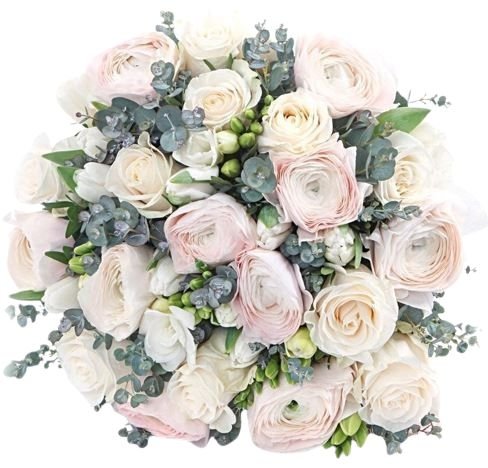- Pale Pink Ranunculus: are known for their intricate, paper-thin petals and a soft, romantic color that adds an elegant touch to the bouquet.