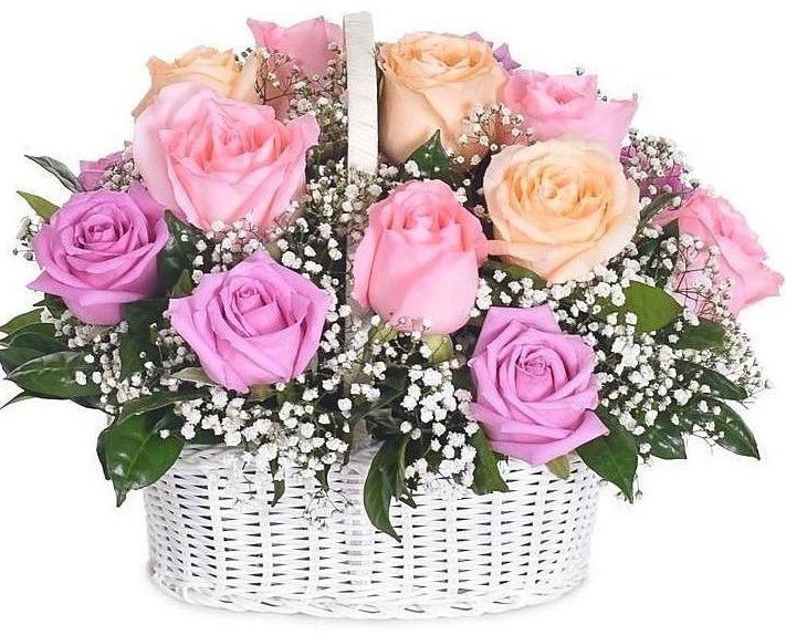 Handcrafted with care by our skilled florists, this basket is a true testament to the artistry of floral design. Whether adorning a tabletop, brightening a living space, or serving as a stunning centerpiece at an event, our Pastel Roses with Gypsophila Basket is sure to leave a lasting impression.
