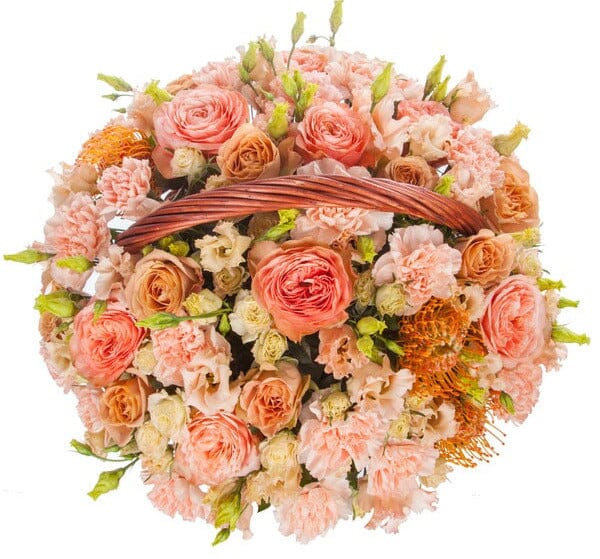 Peach Exotic Basket - Elegant, Vibrant Flowers in a Beautiful Basket