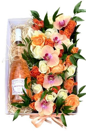 A stunning combination of vibrant and elegant flowers with the added touch of fine wine. Perfect for Mother's Day, anniversaries, congratulations, or as a thoughtful surprise for someone special.
