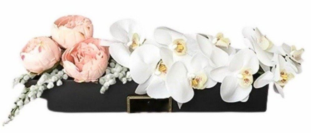Discover the elegance of the Peonies and Orchids Luxury Box, a stunning arrangement of high-quality powder peonies and orchids flowers beautifully placed in a customizable box. This charming composition adds sophistication to any interior, whether it's your living room, an elegant beauty salon, a stylish hairdresser, or even a clinic.