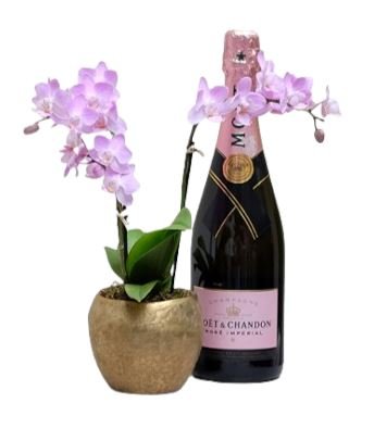 Celebrate special moments with the perfect combination of graceful Phalaenopsis Orchids and a bottle of luxurious champagne. This elegant gift is thoughtfully designed to bring joy and sophistication to any occasion.