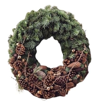 The rich texture of pinecones, accented with delicate branches and lush greenery, is complemented by the subtle shimmer of gold baubles, creating a harmonious blend of natural beauty and holiday magic. Ideal for welcoming guests or enhancing your seasonal decor, this wreath is a true celebration of nature’s finest elements.