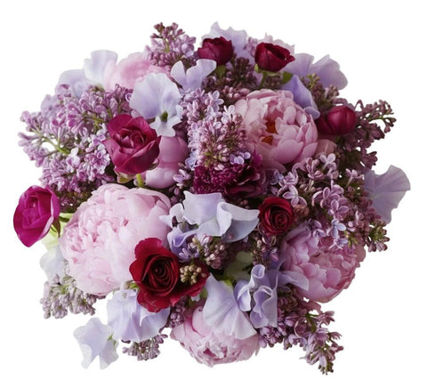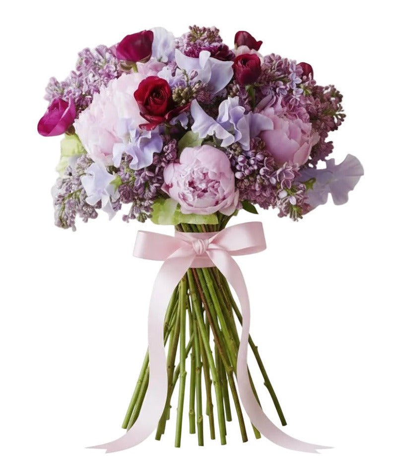 The Pink and Lavender Bloom Harmony Bouquet is a beautifully balanced arrangement that captures the charm of soft pink and lavender tones. Designed with luxurious seasonal flowers, this bouquet features fragrant purple lilac, romantic pink peonies, vibrant cerise ranunculus, and delicate lavender sweet peas, creating a graceful and sophisticated floral composition. The Pink and Lavender Bloom Harmony Bouquet is a sophisticated floral gift that brings together fragrance, colour, and seasonal beauty. A perfect choice for anyone who appreciates refined and romantic flowers.