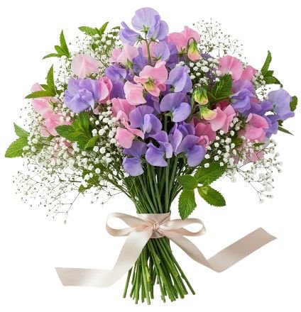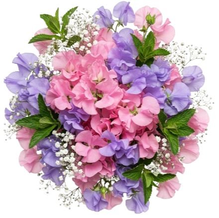Celebrate elegance and charm with the Pink and Lavender Sweet Pea with Gypsophila Bouquet. A dreamy and romantic bouquet designed with soft pastel charm, blending delicate textures and graceful blooms for a light, airy elegance. A bouquet full of lightness and elegance, perfect for expressing gratitude, admiration, or tender affection. Ideal for weddings, spring celebrations, birthdays, or as a sweet everyday gift. Wrapped in soft pastel paper or presented in a simple glass vase, tied with a satin ribbon for a polished and romantic presentation.