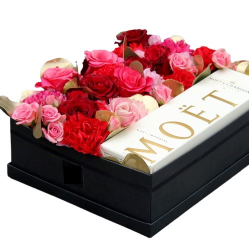 Celebrate life’s special moments with our Flowers Box Signature Collection, featuring a luxurious mix of red roses, pink roses, pink spray roses, red carnations, pink carnations, and pink lisianthus blooms, elegantly paired with your choice of champagne. This thoughtfully curated gift set is designed to elevate any celebration, offering a stunning display of vibrant blooms and the effervescent delight of fine champagne, all beautifully packaged in a charming gift box.