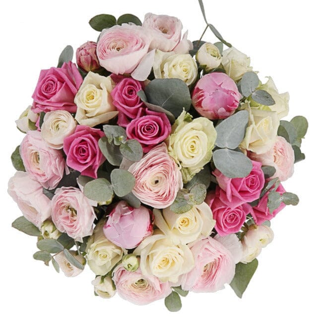 Celebrate love and elegance with our Pink and White Romantic Bouquet, a stunning arrangement that blends soft pale pink ranunculus, pink peonies, pink roses, white roses, and fragrant eucalyptus. This exquisite bouquet is designed to create a romantic and serene atmosphere, making it the perfect gift for anniversaries, birthdays, or any special occasion.